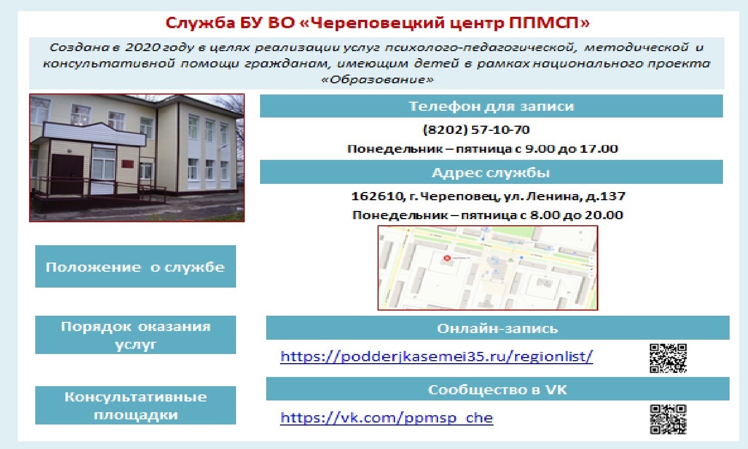 С 1 января 2024 года возобновила свою деятельность консультативная площадка на базе БУ ВО "Череповецкий центр ППМСП"