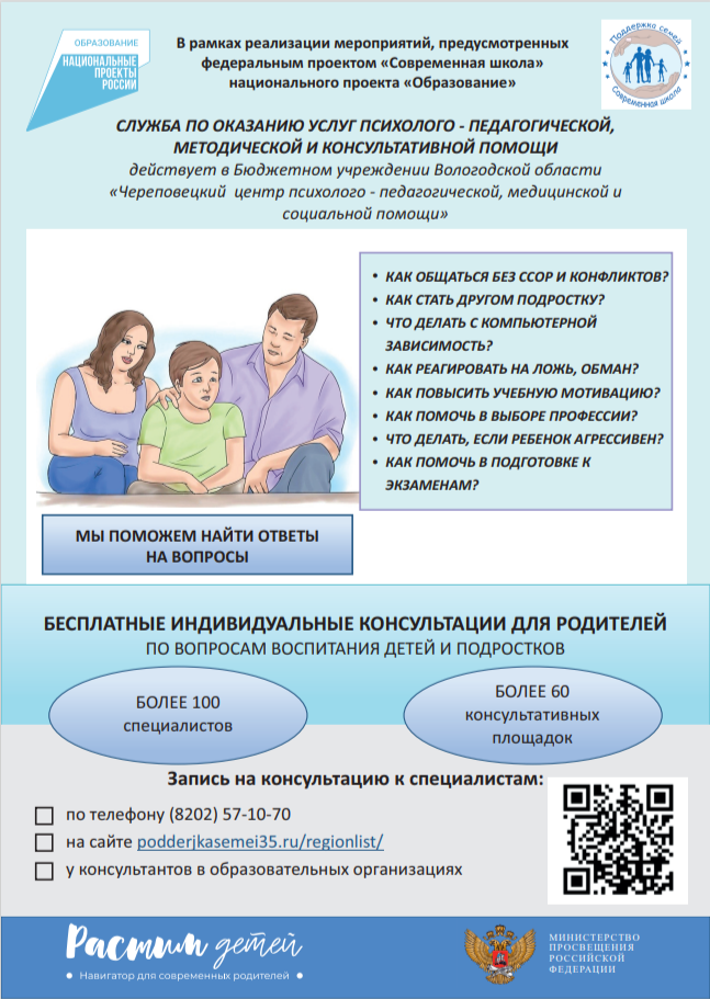 Бесплатная, индивидуальная психолого-педагогическая поддержка семей, имеющих детей, вновь становится более доступной в Вологодской области, благодаря национальному проекту «Образование».