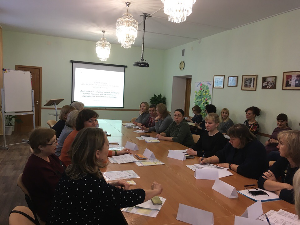 В рамках реализации Комплекса мер Вологодской области по формированию современной инфраструктуры служб ранней помощи (грант Фонда поддержки детей, находящихся в трудной жизненной ситуации, г. Москва) 4 декабря 2018 года в БУ ВО «Череповецкий центр психолого-педагогической, медицинской и социальной помощи» был проведен круглый стол «Деятельность службы ранней помощи в центре психолого-педагогической, медицинской и социальной помощи». В работе круглого стола приняло участие 26 человек. Из них 18 представителей учреждений здравоохранения города Череповца во главе с и.о. начальника управления организации медицинской помощи по городу Череповцу Департамента здравоохранения Вологодской области Дубовенко Л.С., медицинские работники Шекснинской и Устюженской ЦРБ, представители БУ СО ВО «Реабилитационный центр для детей и подростков с ограниченными возможностями «Преодоление», кафедры дефектологического образования Череповецкого государственного университета, учебного центра «Рост.Ок!», специалисты Череповецкого центра ППМСП.